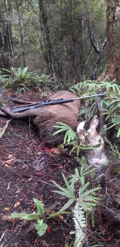Red 2yr stag, 6.5 grendal 120gr SST projectile. 40 meters, forward shoulder dead on spot